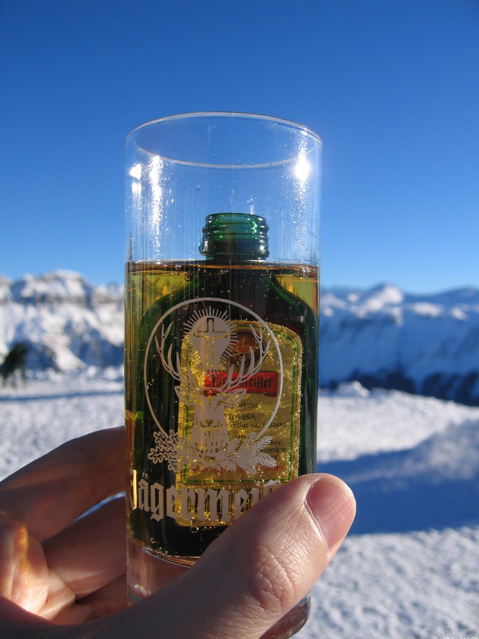 Das lustige Getränk auf dem Maschgenkamm nennt sich Flying Hirsch. Erst schmeckt es wie eine Medizin, doch nach einer gewissen Angewöhnungsphase ist es nicht mal so übel...
