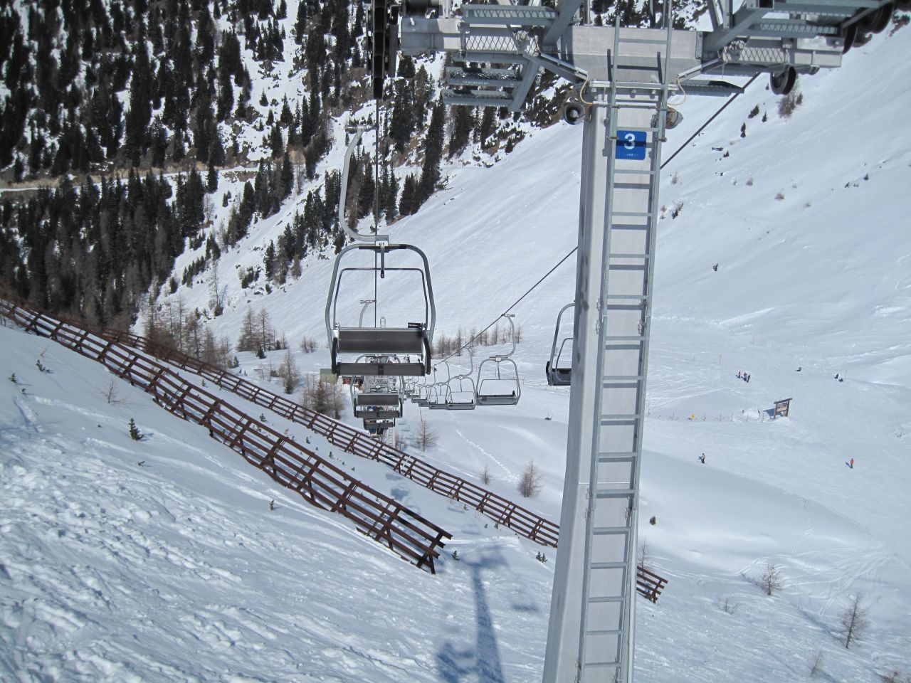 Von Samnaun her wo die Schmuggler Alm steht, brachte uns die doppelstöckige Gondelbahn wieder den Berg hinauf. Die Abfahrt nach Samnaun bei diesem tollen Schnee war einfach der Hit.